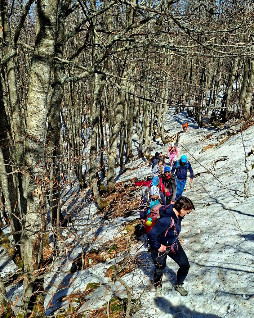 Lijep je proljetni dan, krenuli KPD-ovci na Šatorinu ranom zorom kao i inače, popili obaveznu kavu na odmorištu Dobra i krenuli polako dalje na inzistiranje naše odgovorne vodičice Dude. Svi smo bili dobrog raspoloženja, a imali smo i četveronožnu KPD-ovku Lotu.